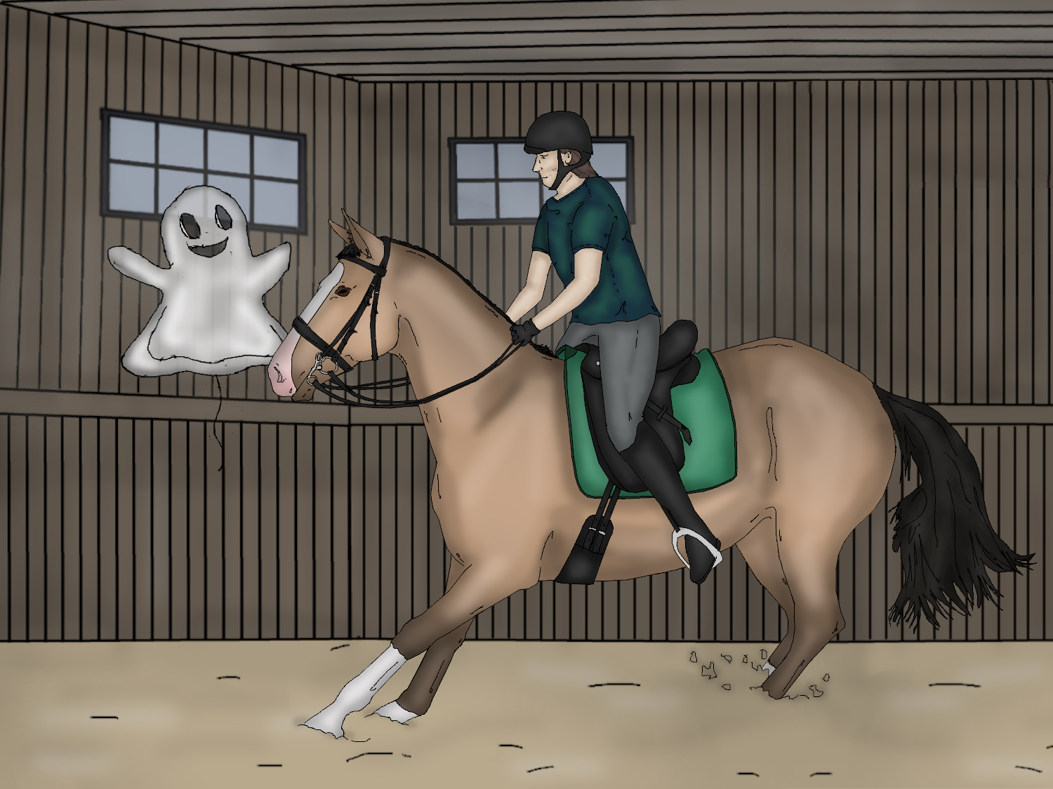 Laukkatyöskentely kuulemma aiheutti Hirviön kanssa hieman ongelmia, joten päätimme paneutua siihen. Esteet saivat orin kuumenemaan, joten ajattelin käyttää tätä ominaisuutta hyväkseni ja hakea hieman ryhtiä ja energiaa laukkapuomien avulla. Suunnitelmani toimikin ja pian Nerita sai Hirviön laukkaamaan laadukasta ja tarmokasta laukkaa, jota olisi hyvä lähteä työstämään. Koska orilla tuntui olevan energiaa, päätimme keskittyä lisättyyn laukkaan. Pyysin Neritaa tekemään lisäyksiä lävistäjällä. Aluksi lisäykset jäivät hieman vaatimattomiksi, mutta lopulta Hirviöstä löytyi näyttävyyttä ja energiaa tarpeeksi. Kävimme myös nopeasti läpi laukanvaihtoja, jotka sujuivat mukavasti.